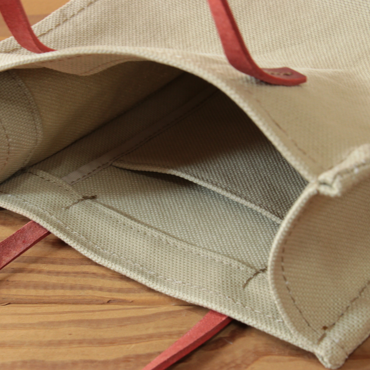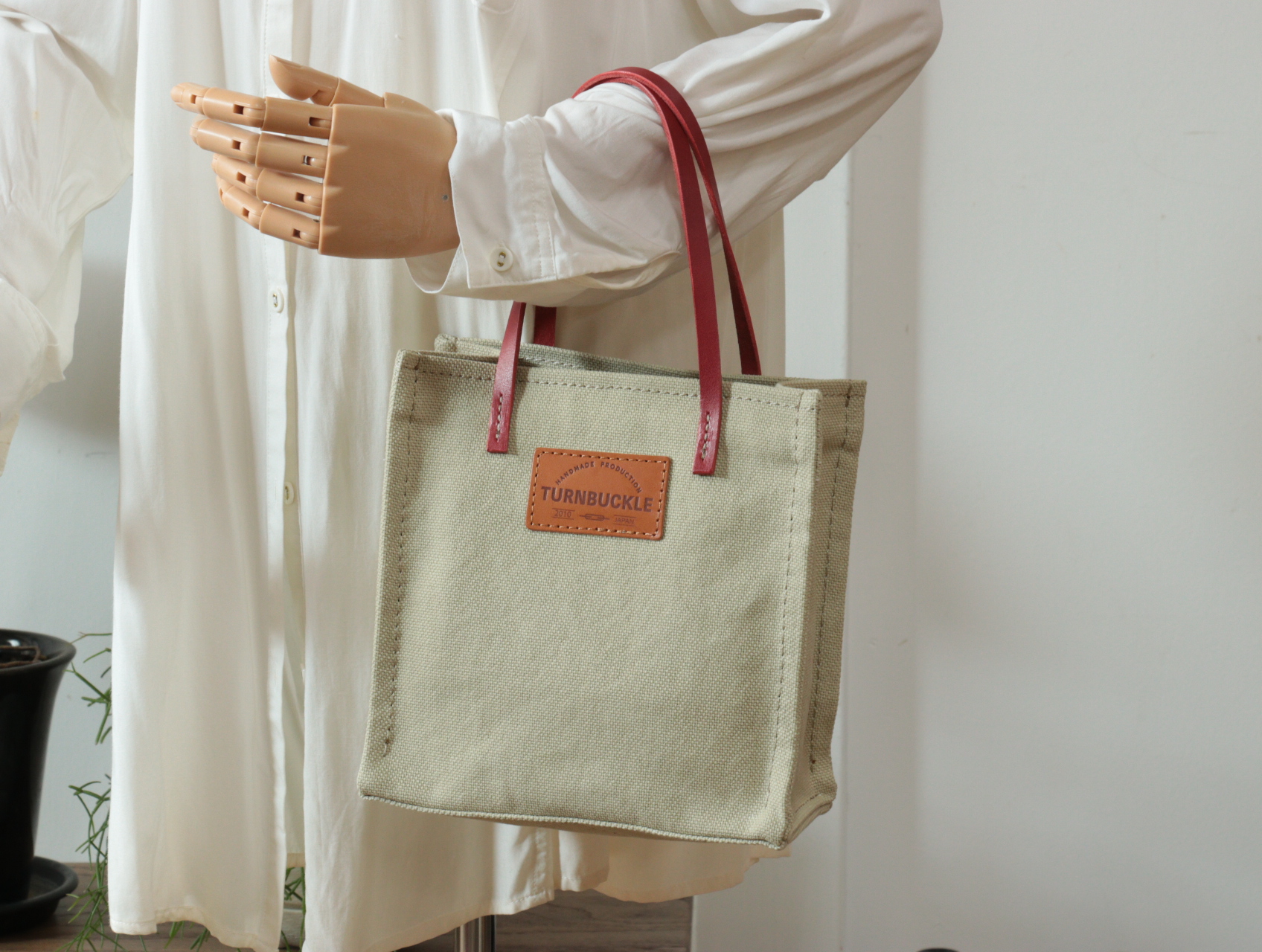 キャンバス(頒布)を使ってスクエア型のミニトートバッグを作ってみました。 今回新たに、ベージュの帆布バージョンが登場しました。 ブラックは、ナイロンキャンバスを使っているので、汚れや多少の雨にも気にせず使えます。 持ち手は、黒の本革を使い細いシルエットでデザインしています。 ちょっとしたおでかけ、ちょこっとコンビニに行く時などにとっても便利なバックです。 新作のベージュの帆布は、柔道着などに使われるような号数の帆布を使って丈夫で それでいて使い込んだようにやわらかな帆布を使っています。 持ち手部分は、ライトブラウンとレッドの2色のレザーを使っています。 お好きなほうをお選びください。 サブバックとしても重宝するかと思います。 小ぶりな見た目ですが、マチがしっかりあるので、手帳・ペンケーズ・カメラなど入れてもしっかり入ります。 |