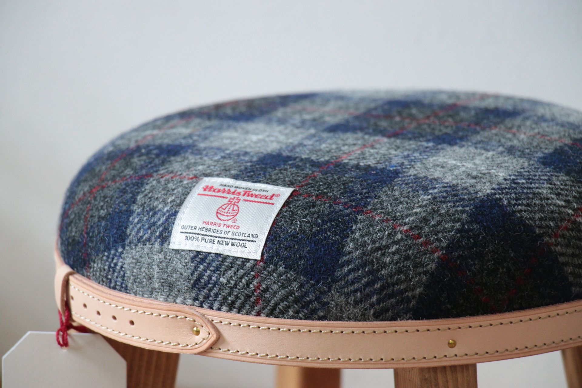 | HARRIS TWEED(ハリスツイード)を使い、まぁるくてかわいい椅子(スツール)を作ってみました。 HARRIS TWEED(ハリスツイード)は英国・スコットランド北西部 アウター・ヘブリディーズ諸島の中の一つ「ハリス島」で手織りされるツイード生地です。 木材部分には、カントリー家具の定番木材、ポンデロッサパインを使い、軽くて丈夫なスツールに仕立てました。 ベルト部分には、牛ヌメ革を贅沢に使用して1つづつ丁寧にステッチを入れ、磨きをかけております。 ヌメ革は、経年変化により、少しづつお色が変わっていきます。 お子様・お孫様へのプレゼントはもちろん、大人が座っても大丈夫な作りですので ちょっとした腰掛にもお使いいただけます。 クッション素材には、硬さの異なるウレタンスポンジを3層構造にしております。 初期タッチを柔らかく、大人が座っても底付しないしっかりとしたクッションが御座います。 |