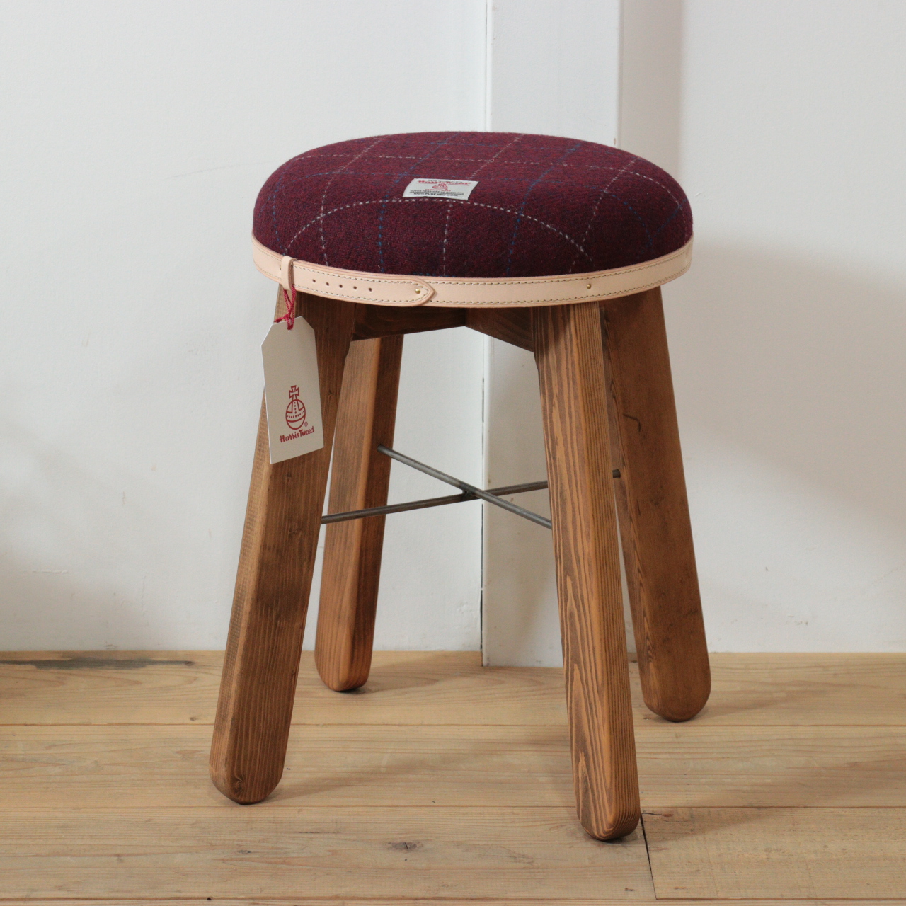 | 英国ハリスツイードの生地を使って、アンティークな風合いのスツールをつくりました。 脚部分には無垢のパイン材を使用して、クッション部分には硬さの異なるスポンジを三層構造で、座り心地の良い椅子に仕立てております。 ハチマキ部分には、本革のレザーを細く切りステッチを入れて本物のベルトの様にしてみました。 ダイニングテーブルにはもちろん、キッチンスペースでちょっとした腰掛けにもお使いいただけるかと思います。 |