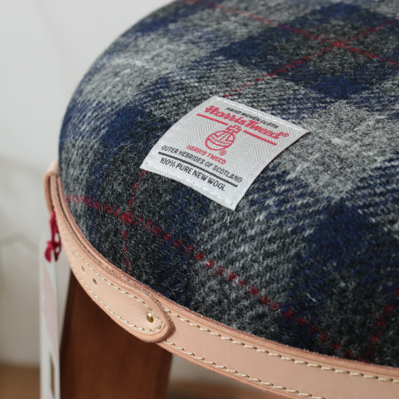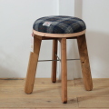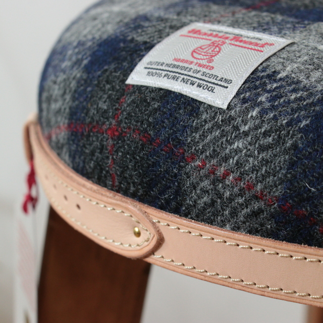 | 英国ハリスツイードの生地を使って、アンティークな風合いのスツールをつくりました。 脚部分には無垢のパイン材を使用して、クッション部分には硬さの異なるスポンジを三層構造で、座り心地の良い椅子に仕立てております。 ハチマキ部分には、本革のレザーを細く切りステッチを入れて本物のベルトの様にしてみました。 ダイニングテーブルにはもちろん、キッチンスペースでちょっとした腰掛けにもお使いいただけるかと思います。 |