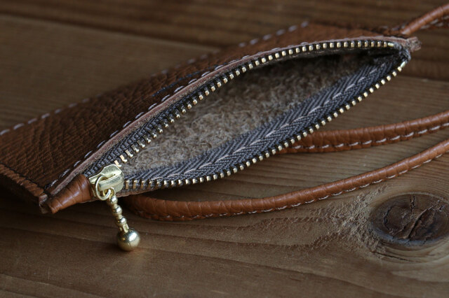 柔らかい革を使って、スマートキーや小物を入れられる ストラップタイプのケースになります。 バッグの持ち手などに取り付けられるストラップ式なので 取り外しも簡単で使い勝手の良い仕上がりになりました。 |