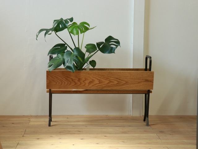 | アイアンを曲げ、無垢のオーク材と組み合わせて プランターやカバン置きにもなる家具を作ってみました。 観葉植物を飾れば、リビングや玄関先でもオシャレに飾ることができます。 また、荷物置きとしても使用できるので、居場所に困るカバンやバッグなどを 置くのにも便利にお使いいただけるかと思います。 |