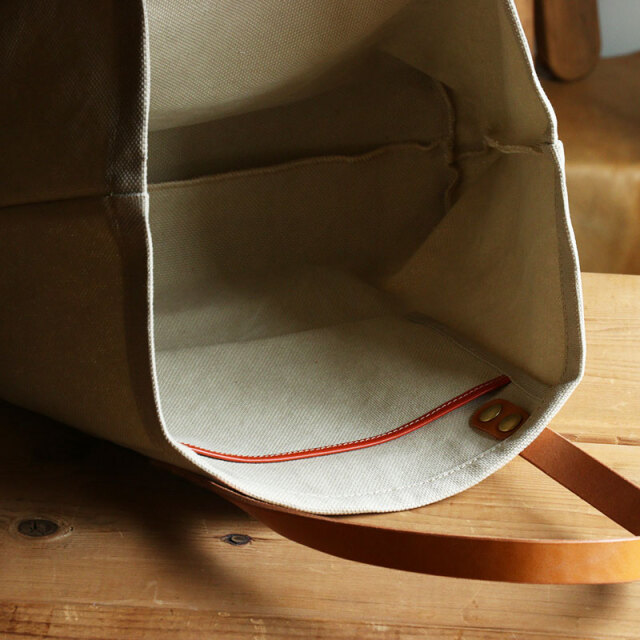 | 生地:帆布 持ち手:ヌメ革 カシメ:真鍮 |